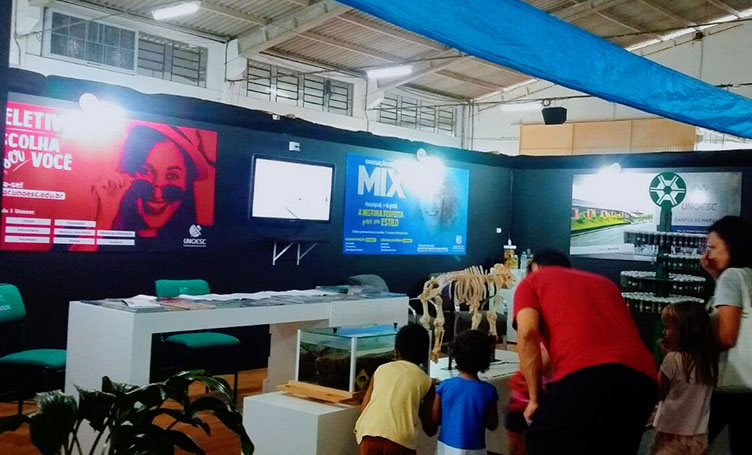 Entre as exposições apresentadas no estande, a exposição da cobra sucuri-verde, chamou a atenção do público. A cobra foi encontrada já morta em São Miguel do Oeste e hoje faz parte do laboratório de Anatomia Animal da Unoesc, utilizado pelo curso de Medicina Veterinária. No estande, está também exposto um esqueleto de suíno do laboratório de Anatomia Animal e uma coleção de sementes do Curso de Agronomia da Unoesc.
