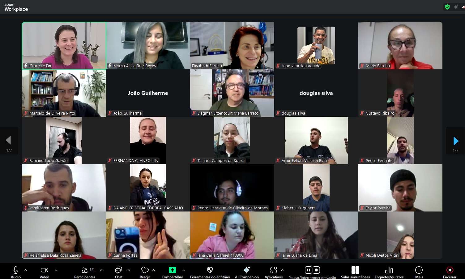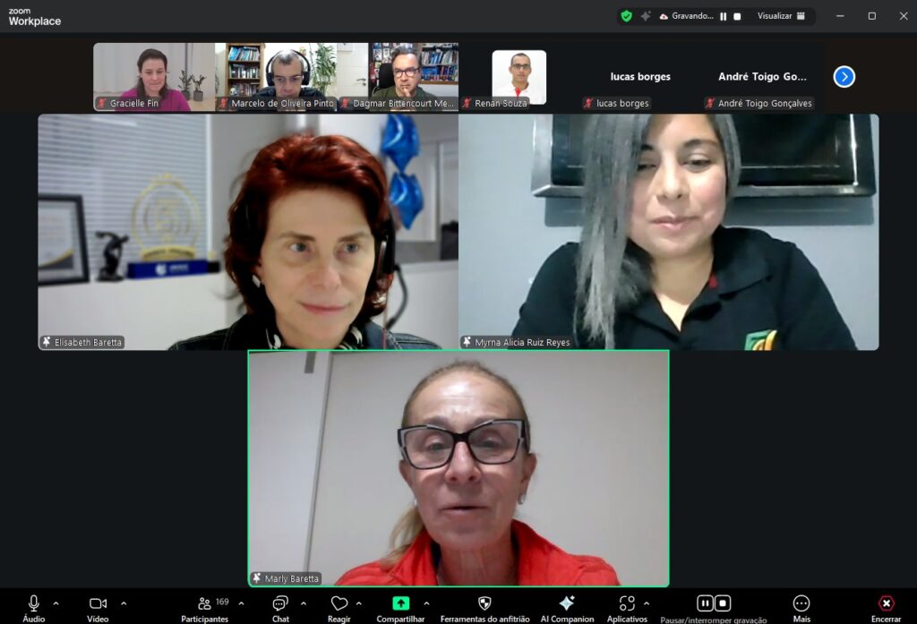 O evento foi encerrado com agradecimentos à professora Myrna pela colaboração e com a tradicional foto em grupo, reunindo os participantes em clima de integração internacional.