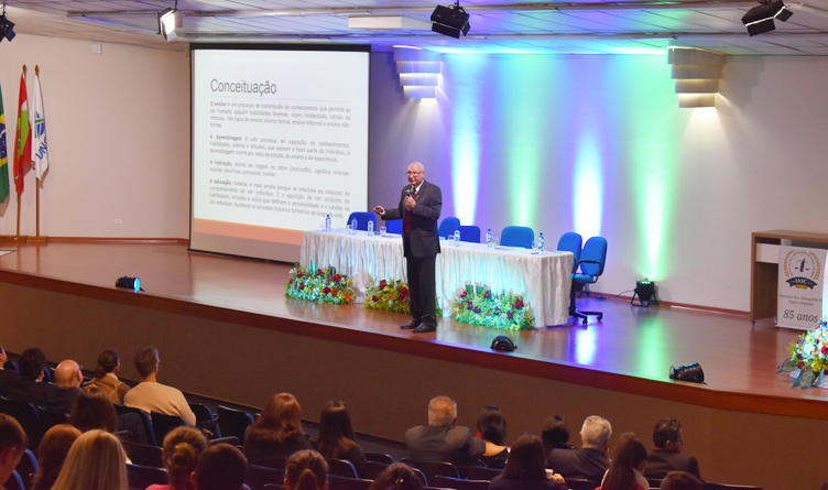 No primeiro dia, além da cerimônia de entrega dos títulos a novos sócios do IASC, foi abordada a temática “Escolarização em casa: possibilidades jurídicas e limites”. Quem ministrou a palestra foi o reitor da Unoesc, professor Aristides Cimadon.