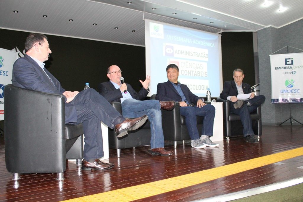 O painel foi mediado pelo professor titular da disciplina de Empreendedorismo na Unoesc Chapecó, Sérgio Migliorini. Ele é consultor empresas; membro do Conselho Deliberativo da Acic e diretor de Franchising na Franquiza Assessoria Empresarial Ltda.