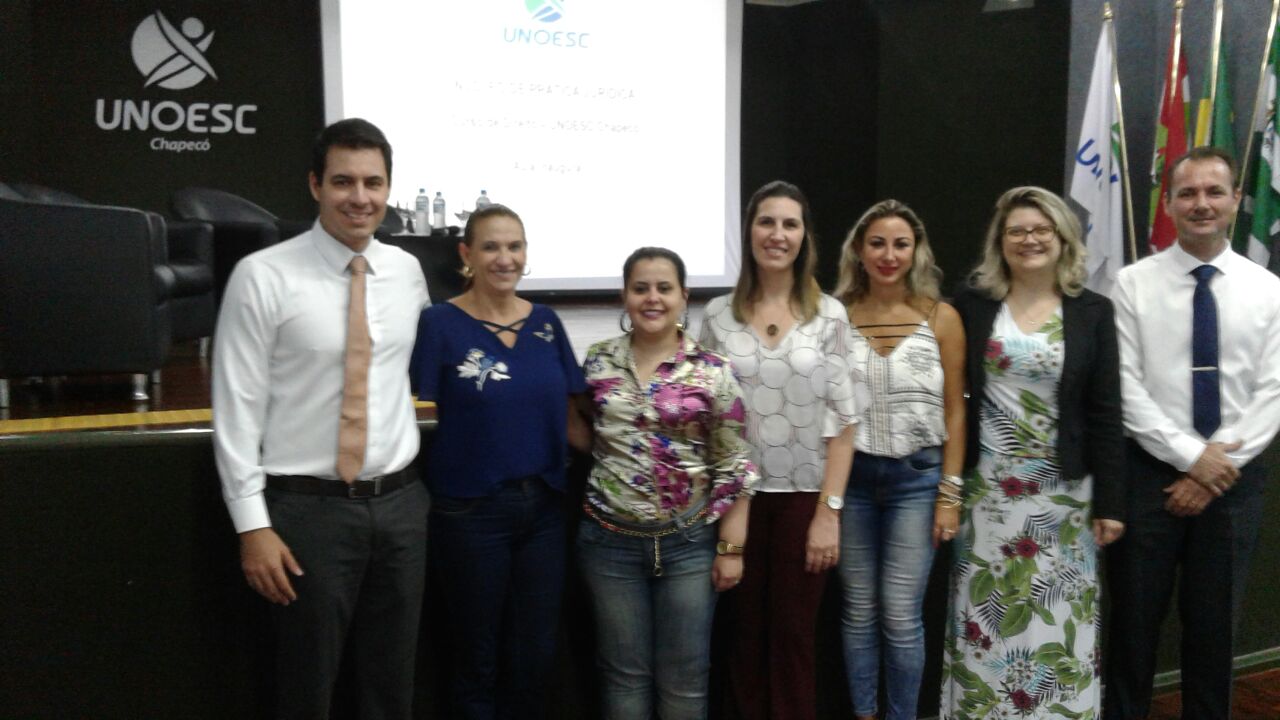 O evento contou com a participação do Presidente Estadual da OAB-SC, Dr. Paulo Brincas, da Dra. Maria Tereza Zandavali Lima, Conselheira da OAB, bem como dos professores do Curso de Direito da UNOESC Chapecó, Profa Elizabete Geremias, Rodrigo Cruz, Darléa Mattiello e Jonas Piccoli.