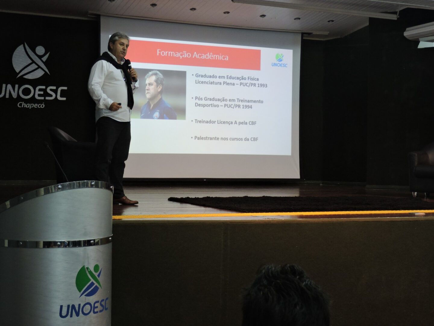 Em 26 de março de 2018, aconteceu no auditório do bloco S da Unoesc de Chapecó a Aula Magna do curso de Educação Física intitulado Motivação Profissional, com o professor de Educação Física e técnico da Associação Chapecoense de Futebol, Gilson Kleina.