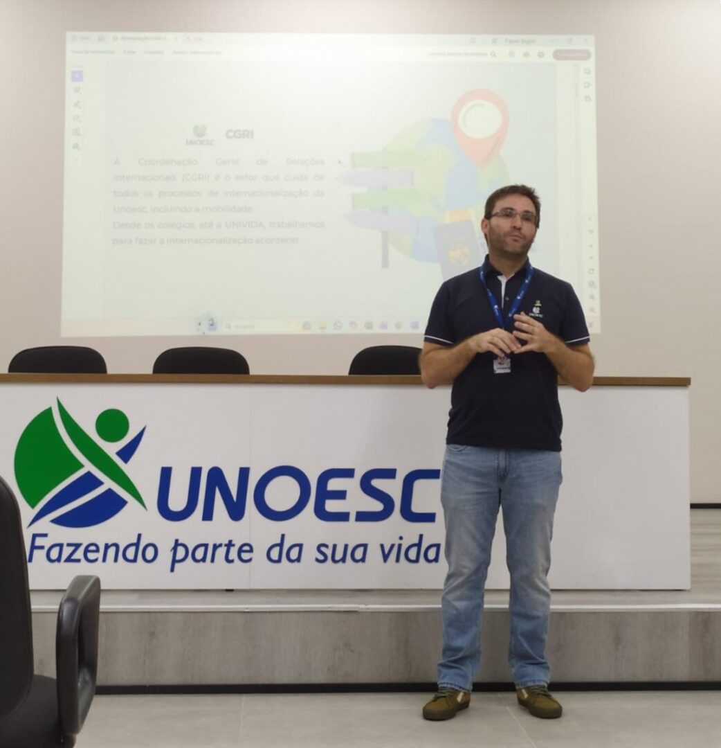 A internacionalização tem ganhado espaço no cenário educacional e empresarial, ampliando possibilidades de formação e atuação profissional. Com esse foco, a Unoesc promoveu, nos dias 17 e 19 de março, encontros voltados à apresentação de oportunidades de intercâmbio para estudantes de diferentes cursos. No dia 17, participaram estudantes de Engenharia Mecânica e Arquitetura e Urbanismo. Já no dia 19, a atividade envolveu turmas de Engenharia Civil, Engenharia Química, Engenharia de Computação e Engenharia de Produção.