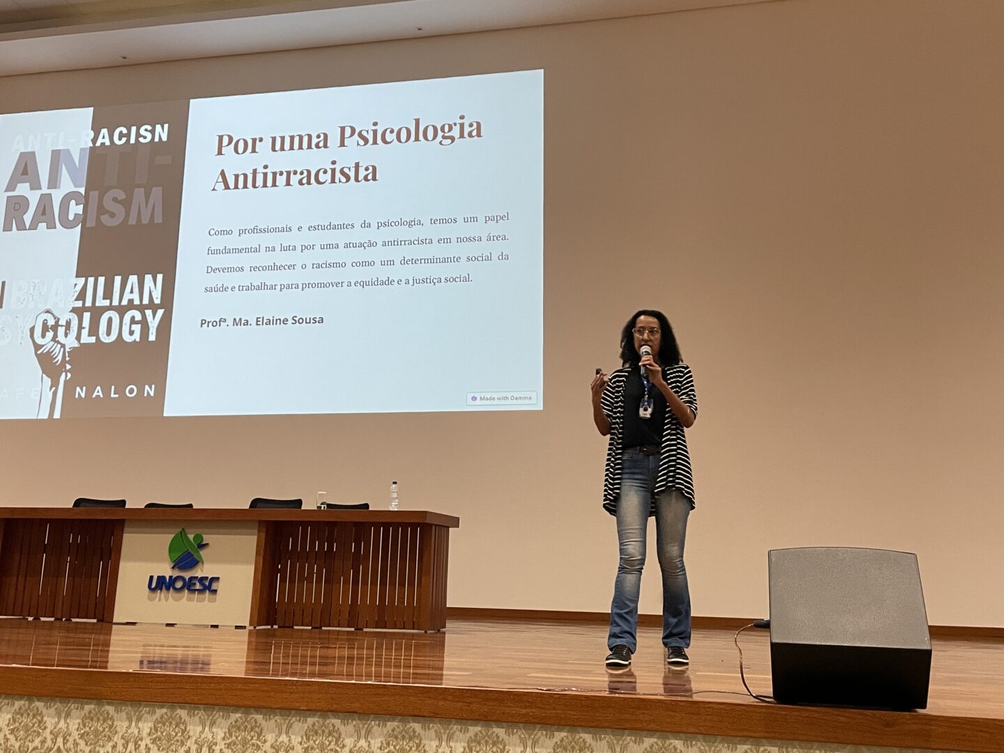 — Trazer esses eventos, essas palestras são importantes para os nossos estudantes no sentido de conscientizar a prática profissional, para trabalhar com as diversas populações, com a população preta e também entender um pouco do percurso da construção da psicologia antirracista e das práticas do psicólogo na luta contra o racismo nos atendimentos e na sociedade. O Curso de Psicologia da Unoesc São Miguel do Oeste realiza diversas atividades abrangendo as áreas da atuação do psicólogo”, destacou Trevisol.