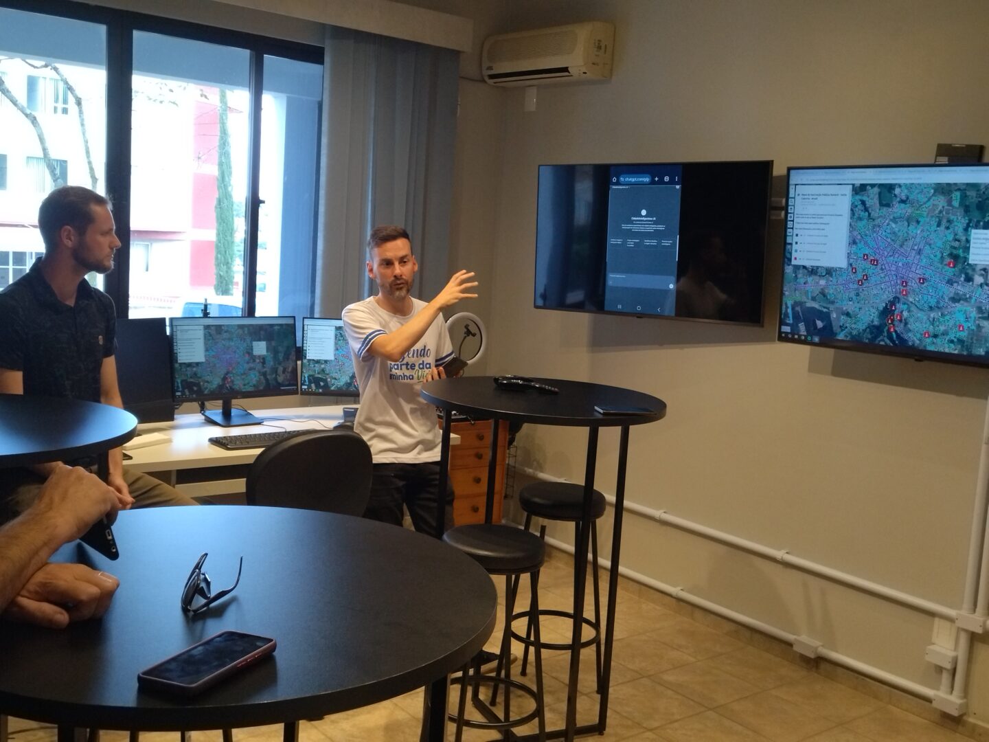 Durante a visita, o professor Anderson Saccol Ferreira apresentou as funcionalidades do portal “cidadeinteligentesc”, uma plataforma digital desenvolvida no âmbito do laboratório, e demonstrou o aplicativo em desenvolvimento, direcionado à gestão pública municipal. A ferramenta visa integrar dados e oferecer soluções acessíveis para aprimorar a administração das cidades.