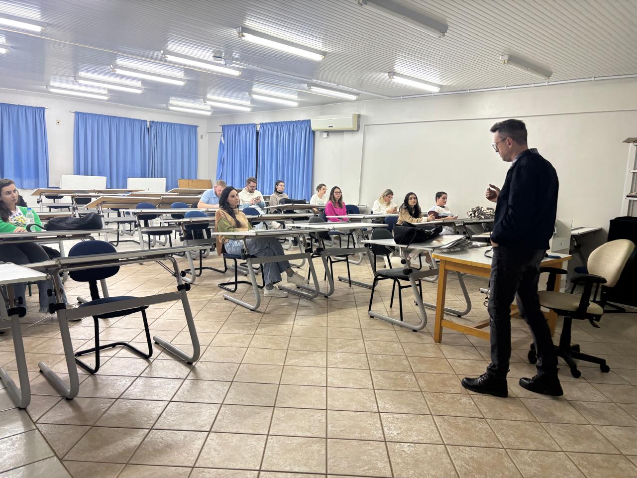 Estudantes da nona fase do curso de Arquitetura e Urbanismo da Unoesc Xanxerê participaram, no dia 19 de agosto, de uma palestra sobre urbanismo e parcelamento do solo. A atividade foi conduzida por Eliano Carnieletto, egresso da Unoesc Xanxerê e profissional atuante no mercado regional, que compartilhou conhecimentos e experiências da área.