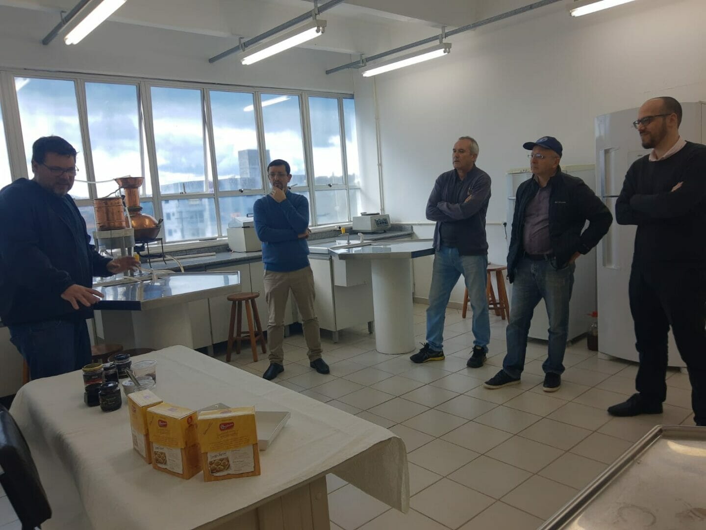 A Unoesc Videira recebeu, na quarta-feira, 11 de maio, a visita de membros da Receita Federal de Joaçaba que estiveram conferindo o resultado final de um projeto desenvolvido em parceria entre as instituições, que prevê a desmaterialização de produtos apreendidos e que entram ilegalmente no país. Para Videira, a Receita Federal repassou 100 garrafas de vinhos, as quais após o processo de destilação, foram produzidos álcool gel, álcool 70 e outros subprodutos, como doces e geleia de uva.