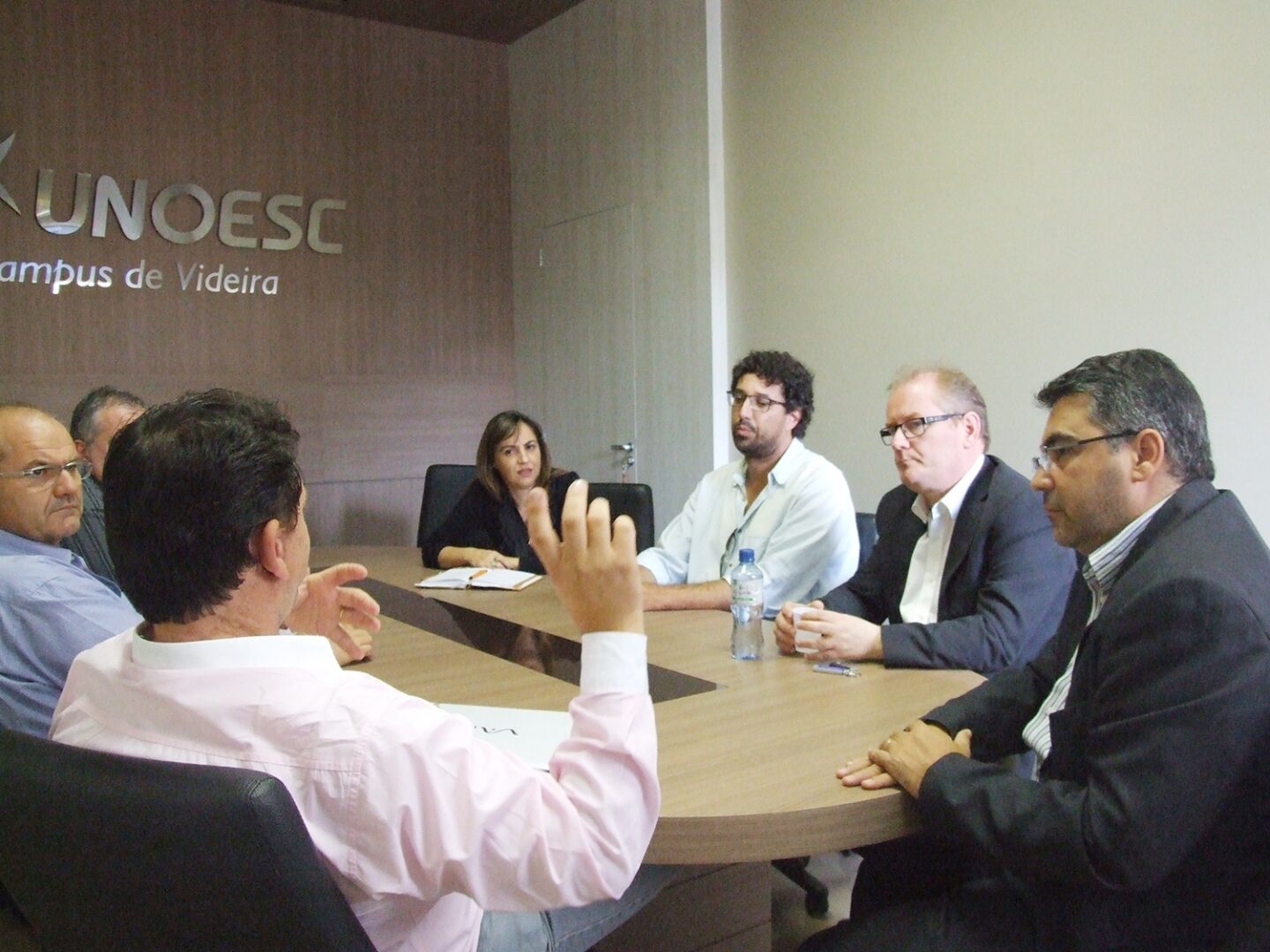 A Unoesc Videira recebeu nesta quinta-feira 03, a visita do professor/pesquisador Gary Hanehan, representante do colégio de Ciências e saúde de Dublin Irlanda. Hanehan possui larga experiência no desenvolvimento de pesquisa nas indústrias de alimentos, Farmacêutica e de Biotecnologia e durante sua estada em Videira ele conheceu os laboratórios, se reuniu com o vice-reitor de campus Antonio Carlos de Souza e demais dirigentes, e a noite ministrou palestra para os acadêmicos dos cursos das áreas afins.