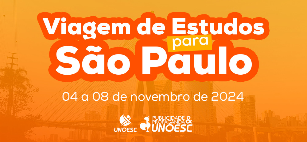 Anualmente o curso de Publicidade e Propaganda da Unoesc realiza uma viagem para São Paulo onde acadêmicos e interessados fazem visitas importantes na área da comunicação. O aprendizado além da sala de aula, em um dos principais centros de comunicação do Brasil, é necessário quando se preconiza uma formação completa em Publicidade e Propaganda. Quando nos deparamos com novos ambientes, outras experiências e novas realidades, nosso mundo começa a se abrir e nos tornamos mais criativos.